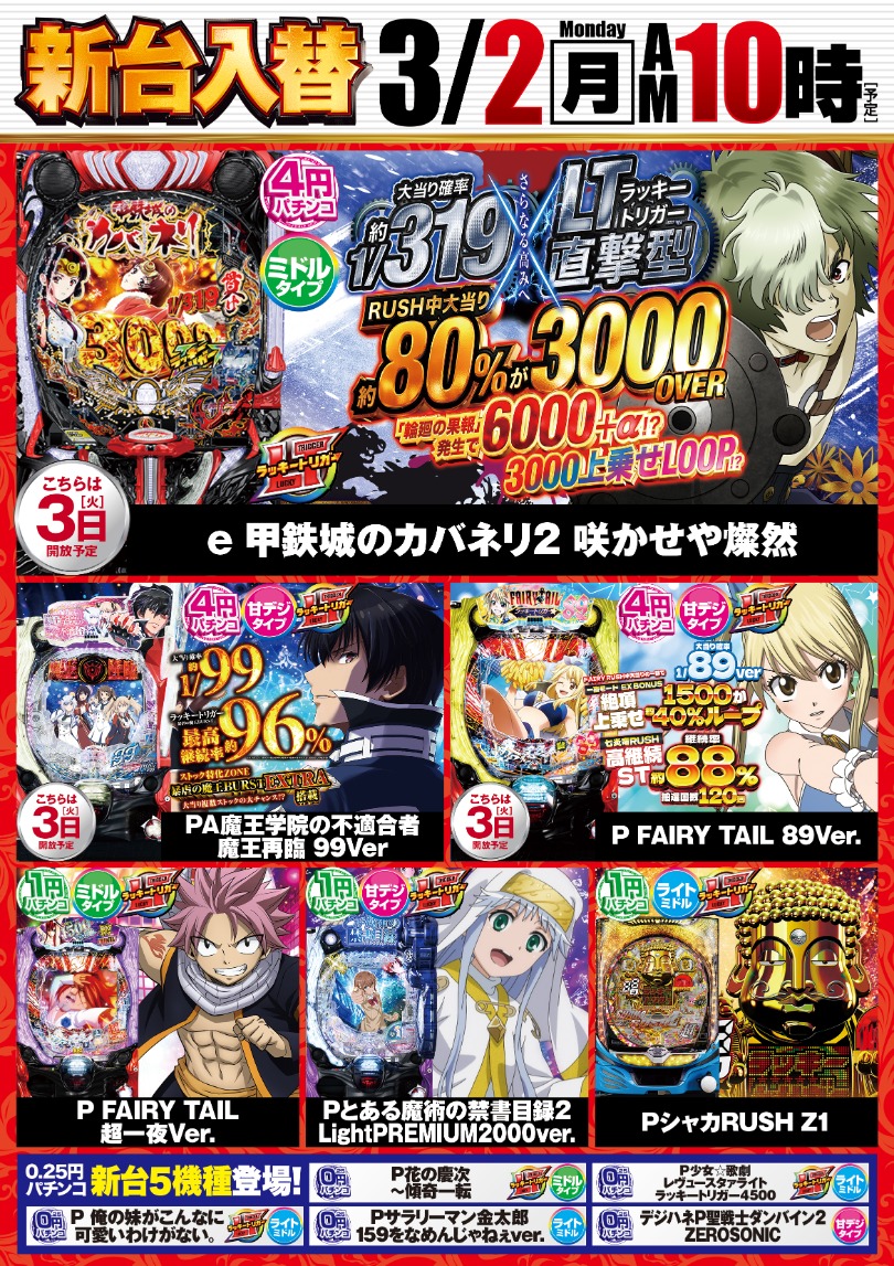 | 遊技料金 | パチンコ: [4] [2.5] [1] [0.25] パチスロ: [20] [10] [5] [1.25] |