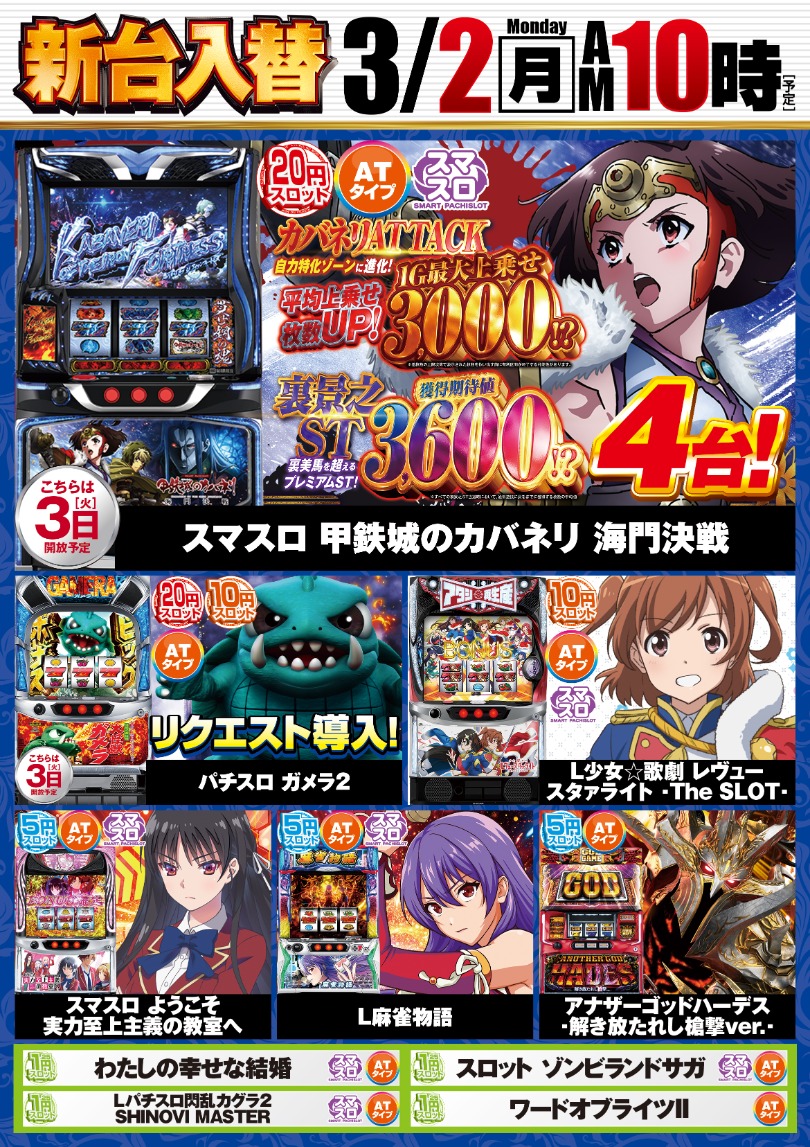 | 台数 | パチンコ 240台 / スロット 208台 |