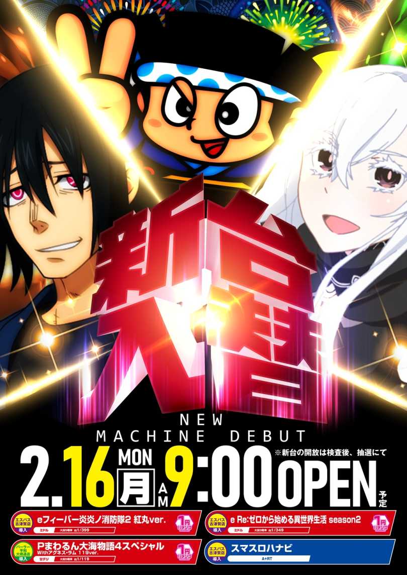 「2月16日㊊ 新台入替 3機種 計3台」